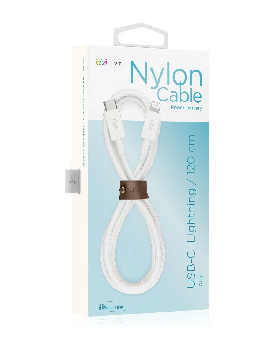 Зарядный провод "vlp" Nylon Cable USB C - Lightning MF 1.2м, белый